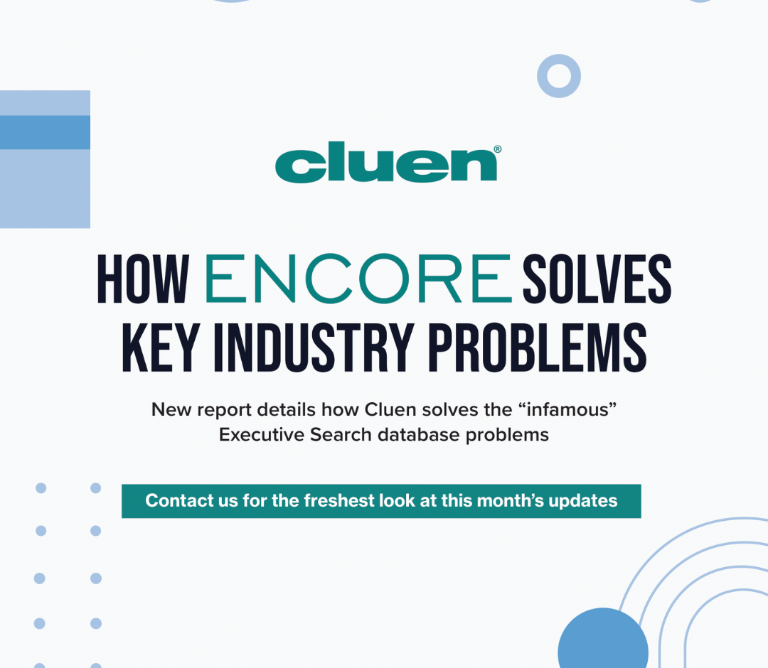 For over 30 years, Cluen has set the standard for executive search tech innovation. Encore is our AI-powered platform built to eliminate admin, uncover hidden opportunities, and fuel the growth of the world’s best firms.